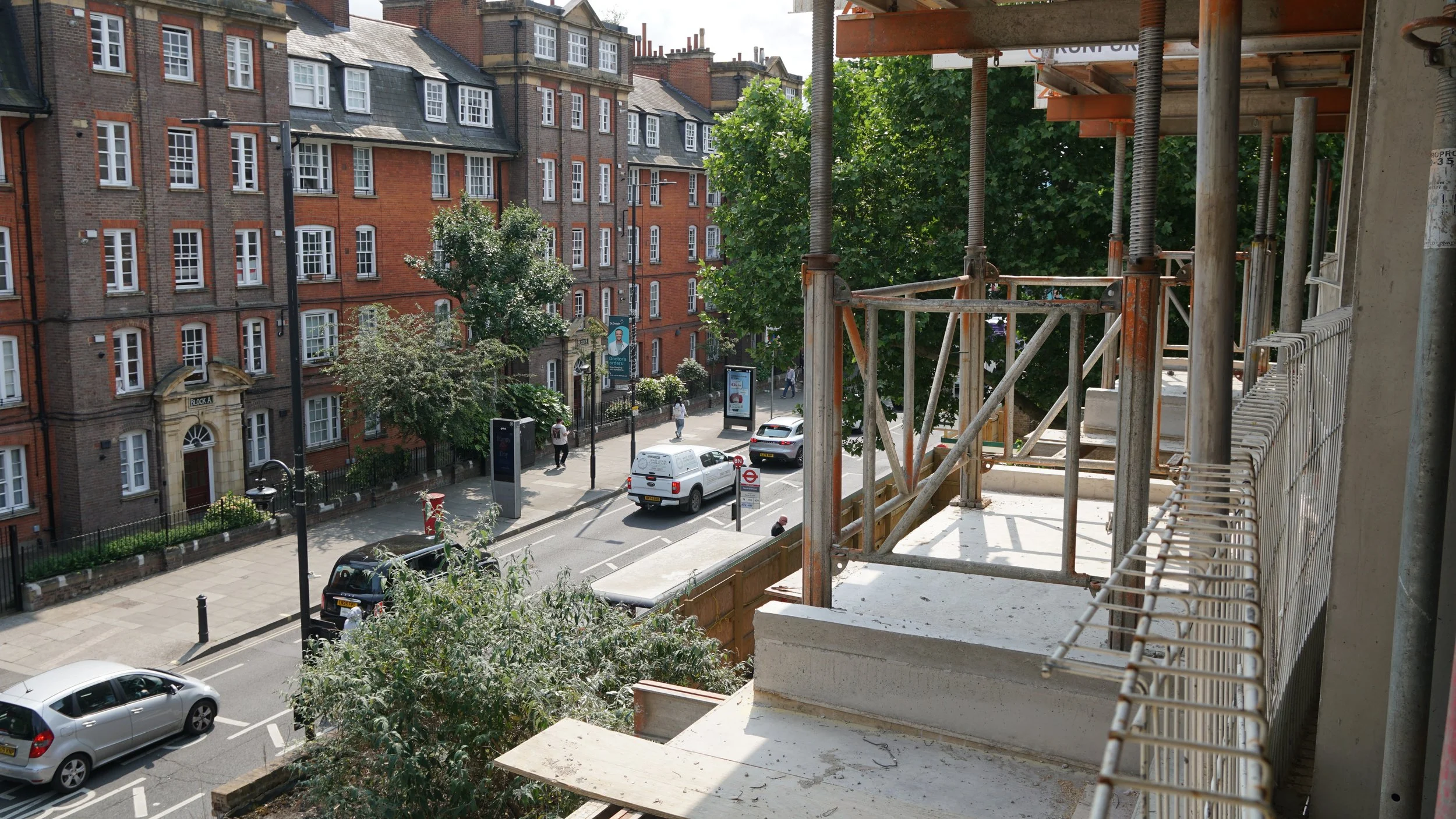 The design establishes a strong street presence along Lillie Road, with clearly defined entrances that activate the frontage. The community centre is accessed from a newly created pocket square, offering a welcoming public space at the heart of the scheme. Mature trees along the street are retained and carefully pruned, complemented by new planting, hedges, and greenery that create a softer edge to the urban setting.
