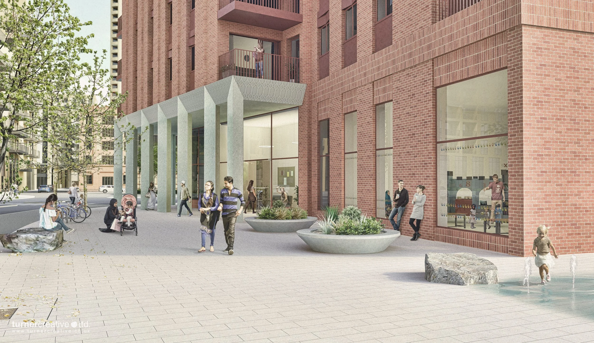 The development will deliver 215 high-quality residential homes, including a meaningful proportion of affordable housing for the local community. It is supported by ground-floor commercial space, new public realm areas and a series of adaptable community, cultural and educational spaces designed to support local activity and long-term social value. Residents will also benefit from communal roof terraces, high-quality amenity spaces and secure cycle parking, reinforcing the scheme’s sustainable and people-focused approach.
